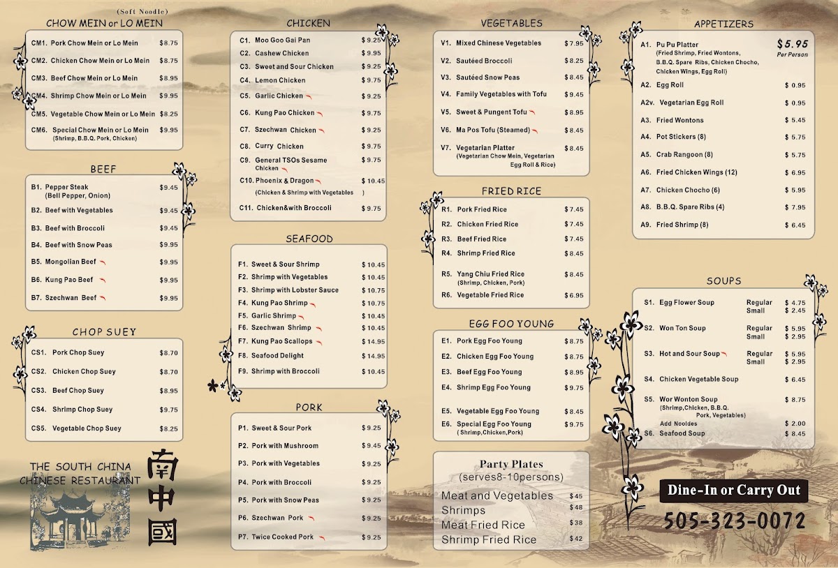 Welcome to South China, a cherished culinary gem nestled in the heart of Albuquerque, New Mexico. Located at 1502 Wyoming Blvd NE, this delightful restaurant has gained a loyal following thanks to its steadfast commitment to freshness and flavor. From the moment you walk through the door, you're greeted by an inviting atmosphere and a warm smile from the staff, who treat each guest like family.